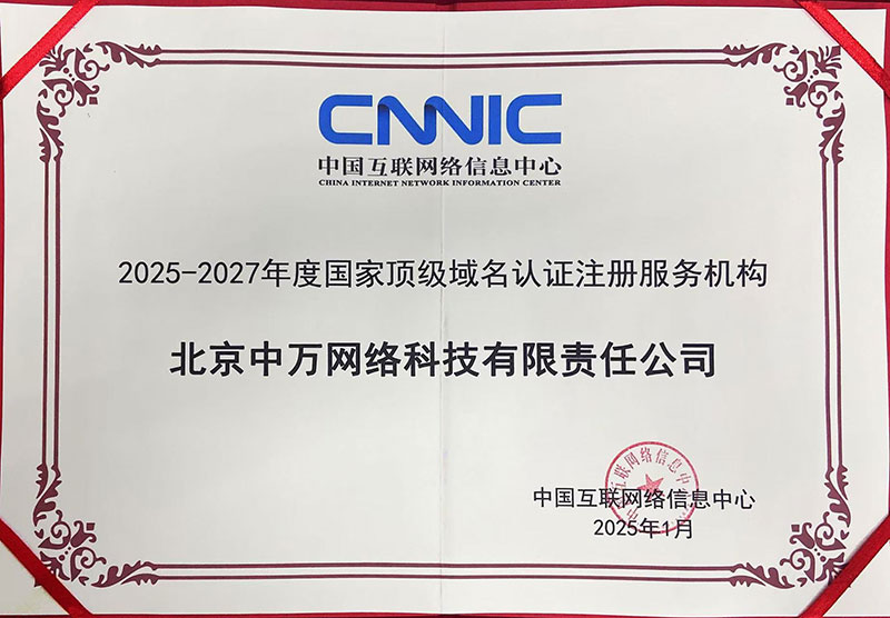 2025-2027年度國家頂級域名認(rèn)證注冊服務(wù)機構(gòu)